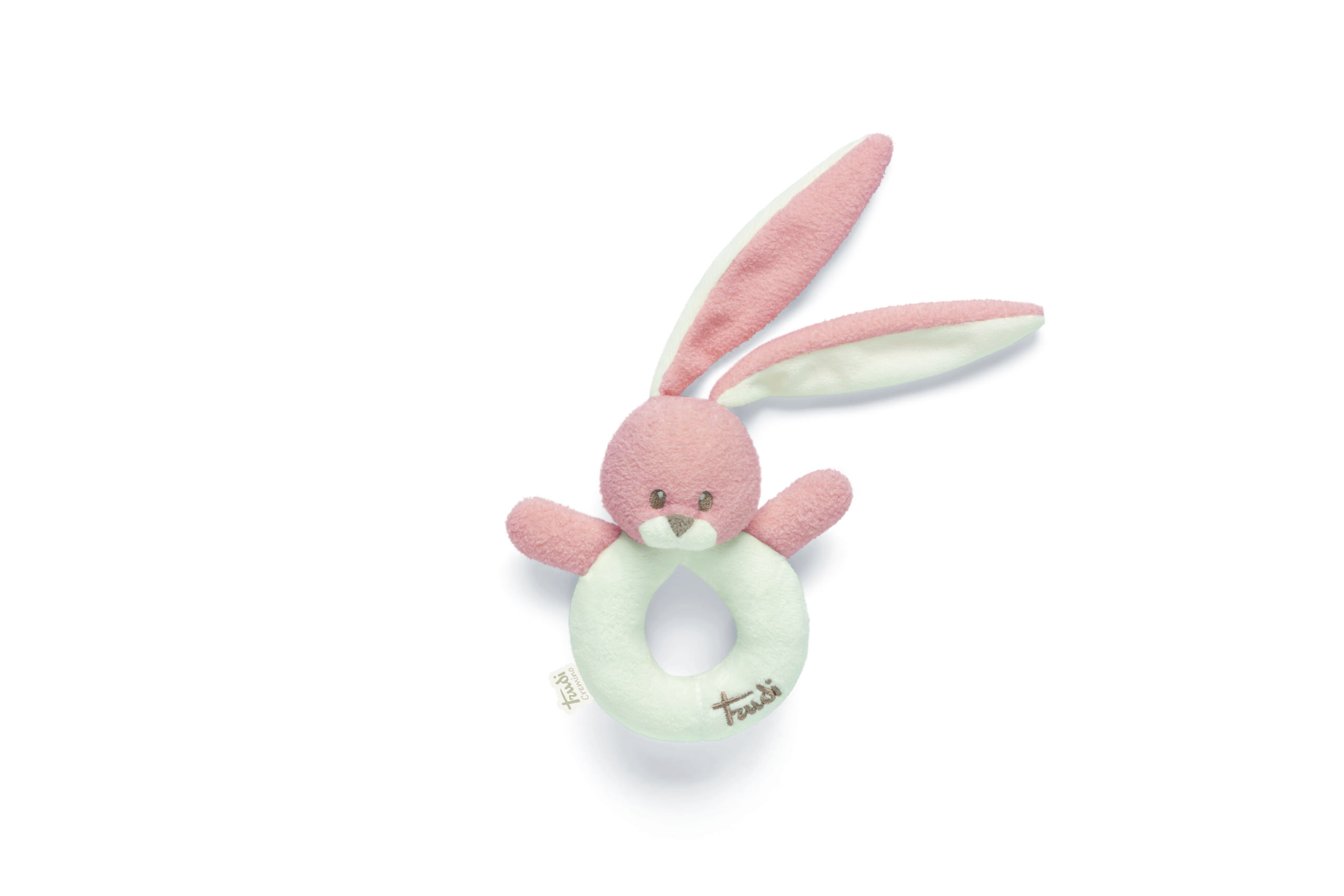 Il tenero coniglio sonaglio rosa è caratterizzato da un tessuto estremamente morbido, studiato appositamente per i neonati.