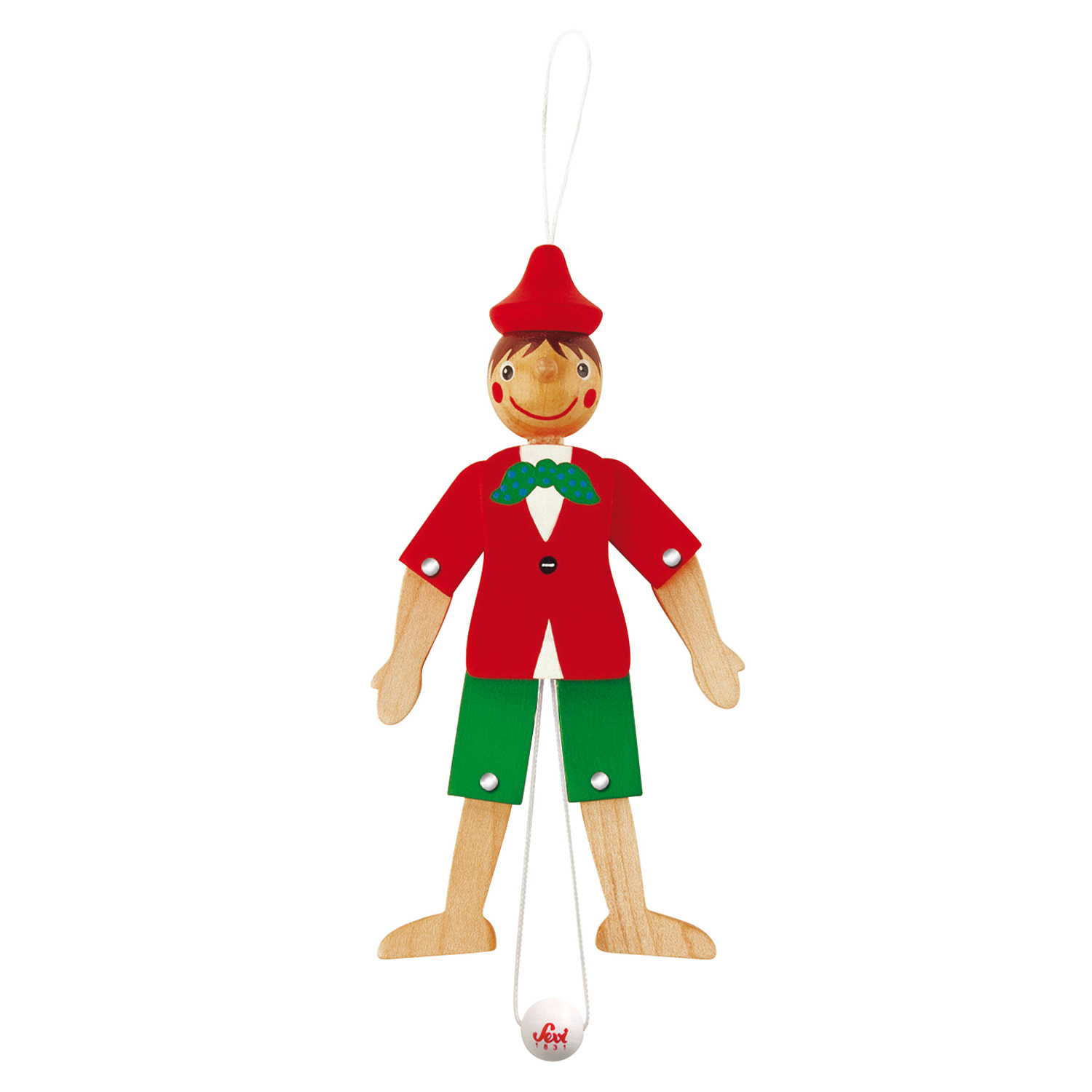 Realizzato in legno come burattino in due taglie, diventa un amico di giochi inseparabile.