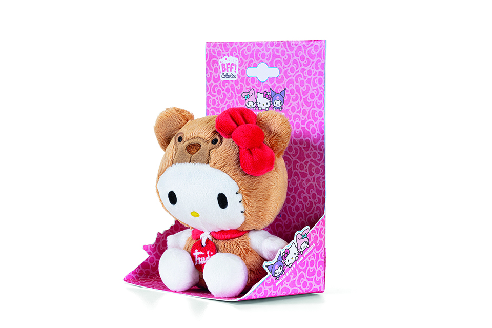 Hello Kitty e l’Orso Ettore danno vita insieme ad un prodotto unico e originale. La collezione, caratterizzata da due personaggi in un unico peluche, è arricchita con i migliori amici di Hello Kitty: l’inconfondibile Kuromi e la dolce Melody.