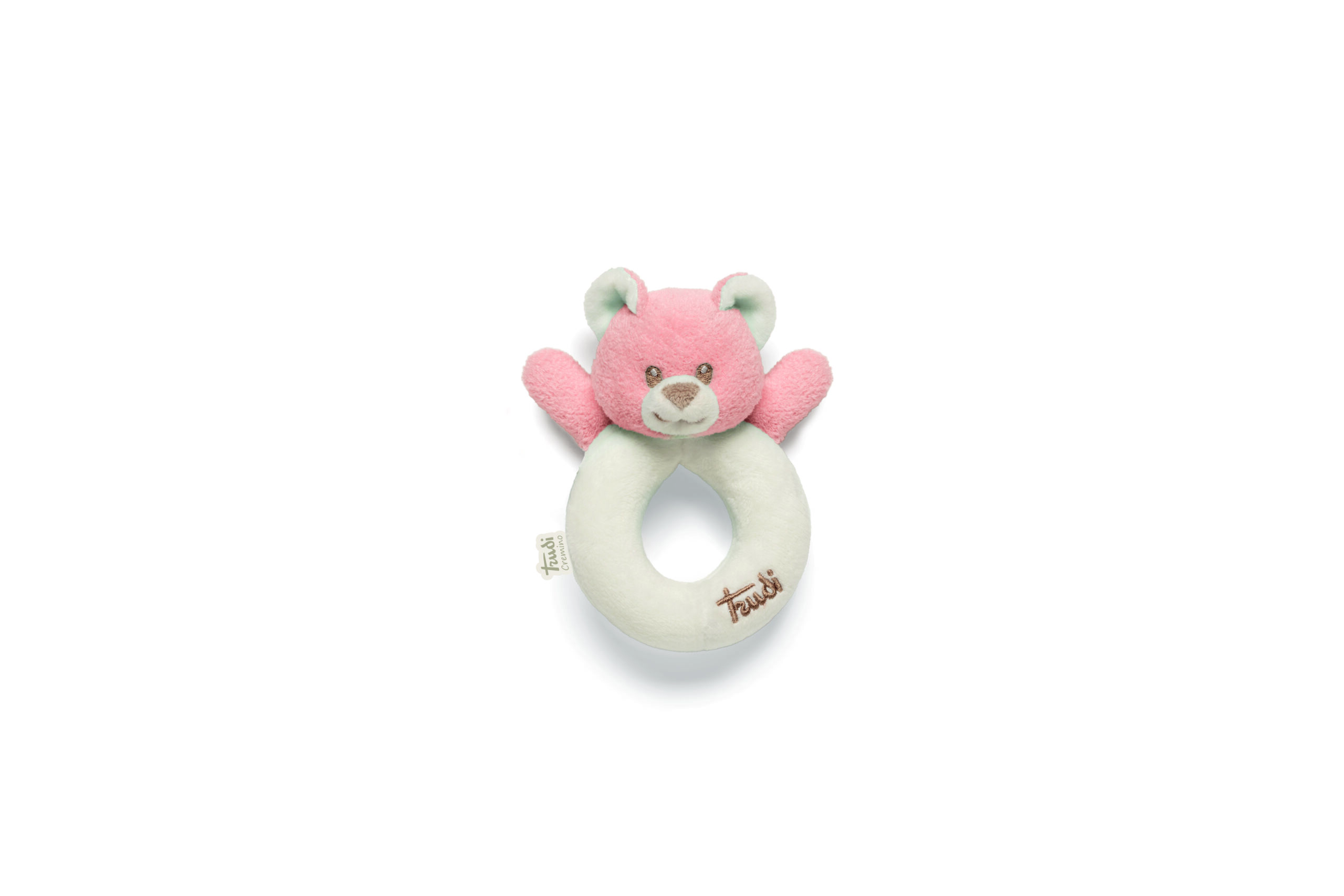 Il tenero Orso sonaglio rosa è caratterizzato da un tessuto estremamente morbido, studiato appositamente per i neonati.