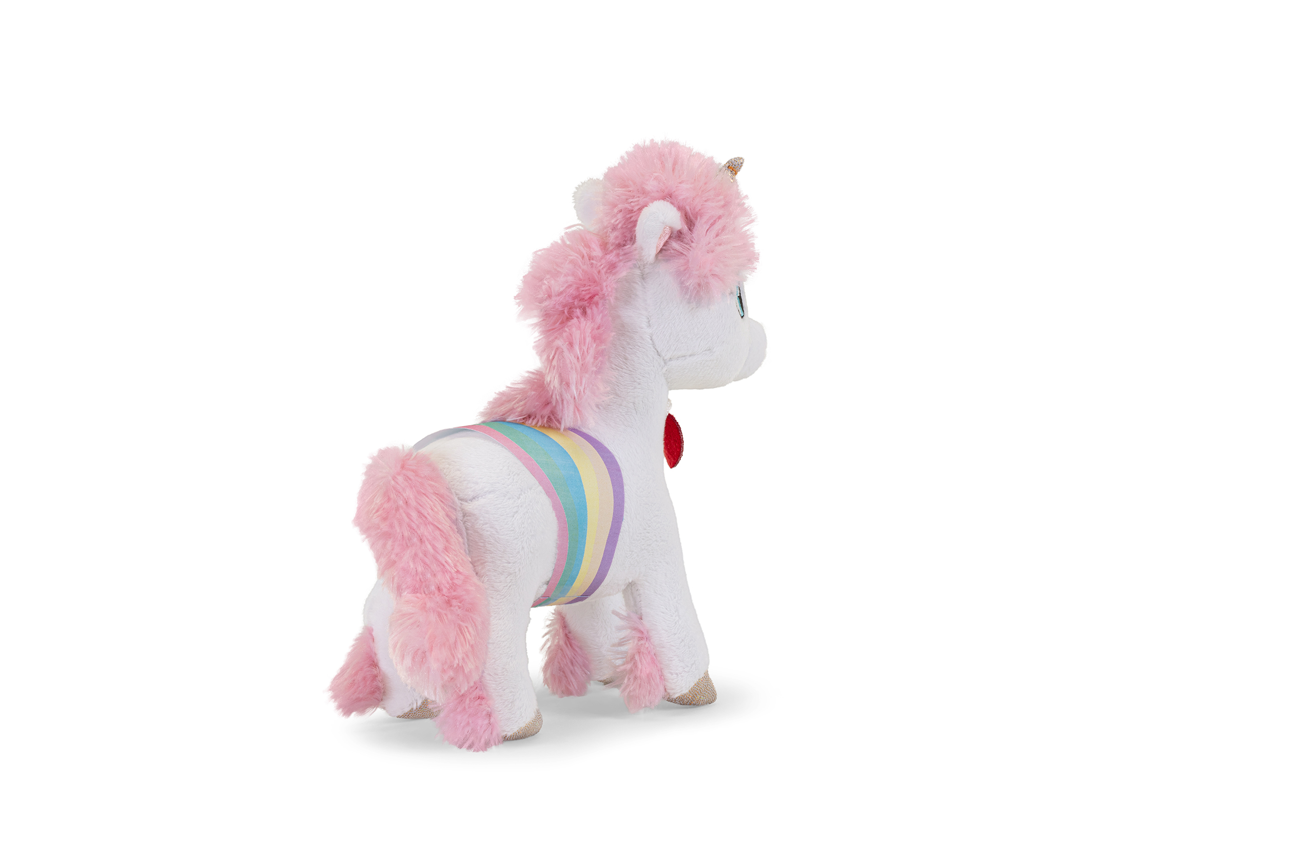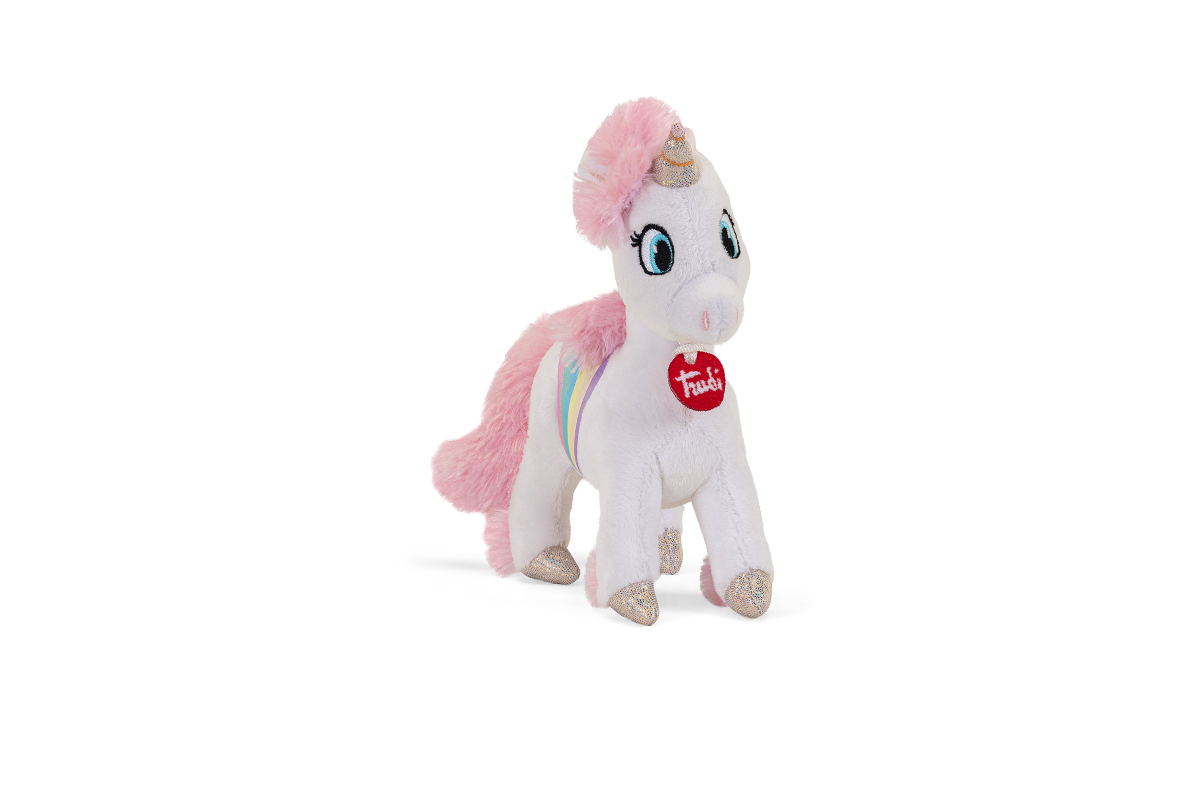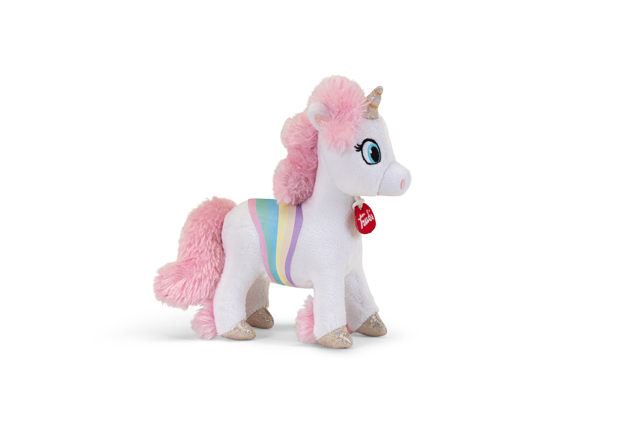 Cavalca insieme al trudino unicorno Trudi: un vero tesoro per ogni amante dei peluche! La sua criniera soffice e rosa invita a essere accarezzata, mentre il dolce dettaglio degli occhi aggiunge un tocco irresistibile di tenerezza. Il corno, impreziosito da glitter scintillanti, brilla di magia, e la fascia arcobaleno in sella conferisce un ulteriore tocco di eleganza e unicità.